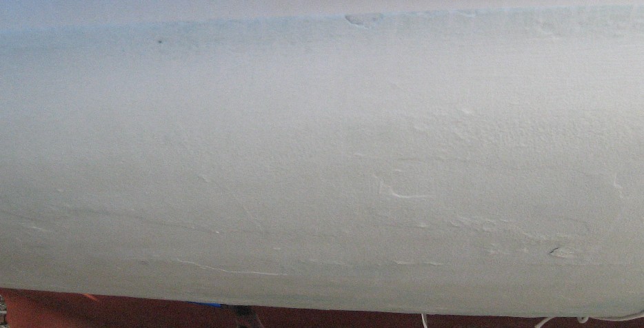 Looking at the paint up close we can easily see why this bottom would be slow. On top of that all the various surfaces and cracks in the paint will be great places for growth. The only solution is to strip the hull beneath the waterline to the gelcoat and then apply new barrier coat and antifouling. The new surface will be smooth and much faster.