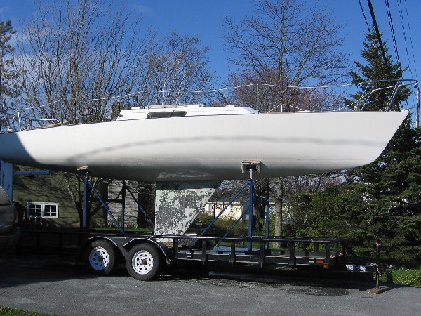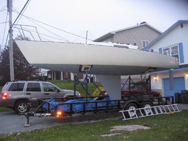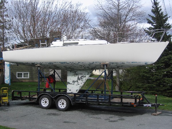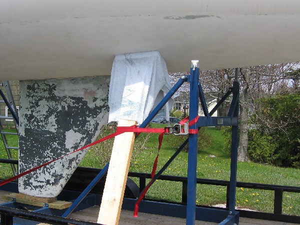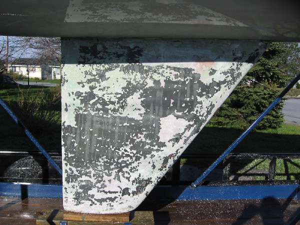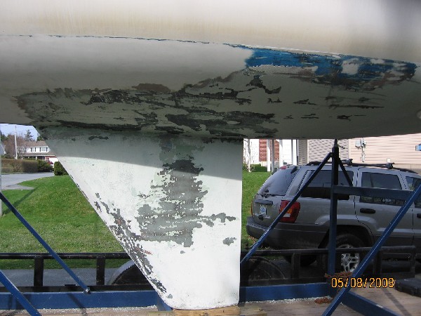 In the above picture the hull is stripped forward of the keel. The keel and keel area have been pressure washed and the area aft of the keel has not been started.