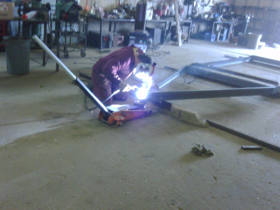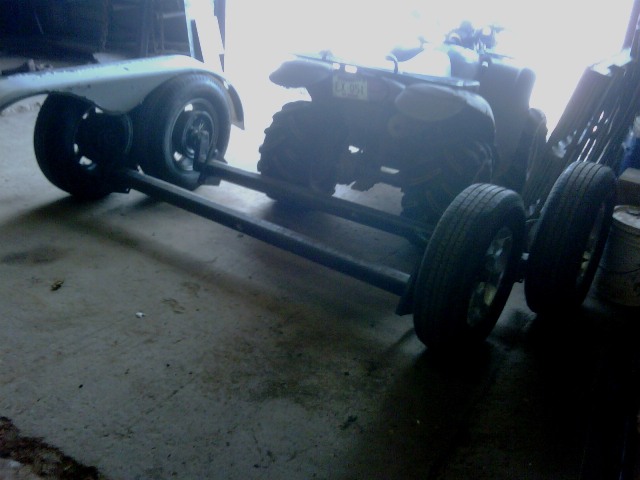 Jack attached, axles welded on, left fender& wheels in place