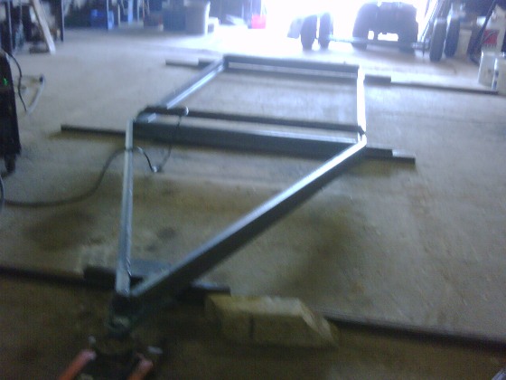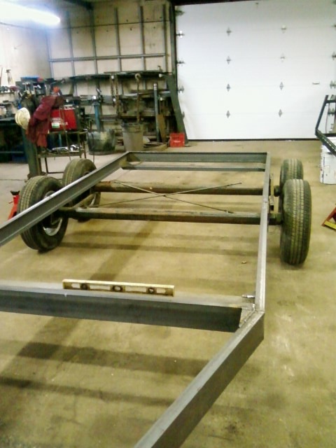 Axle spacing complete and frame temporarily atop axles - starting to look like a trailer!