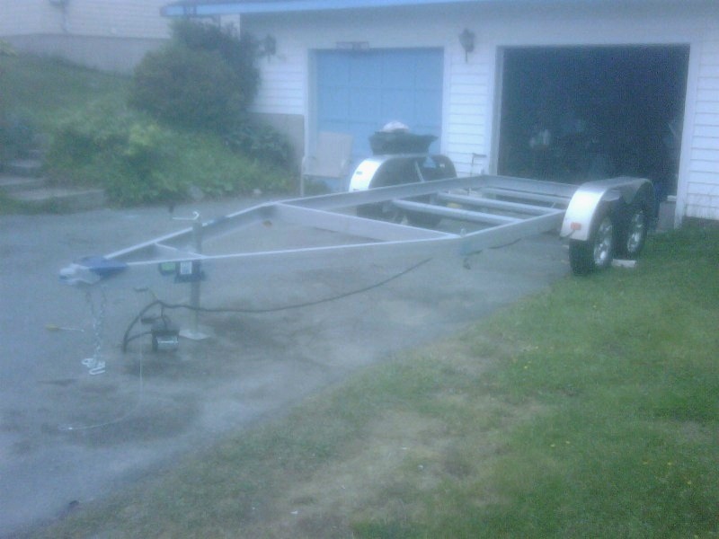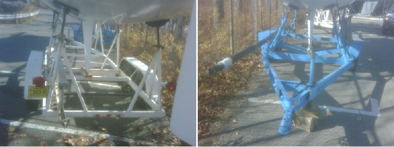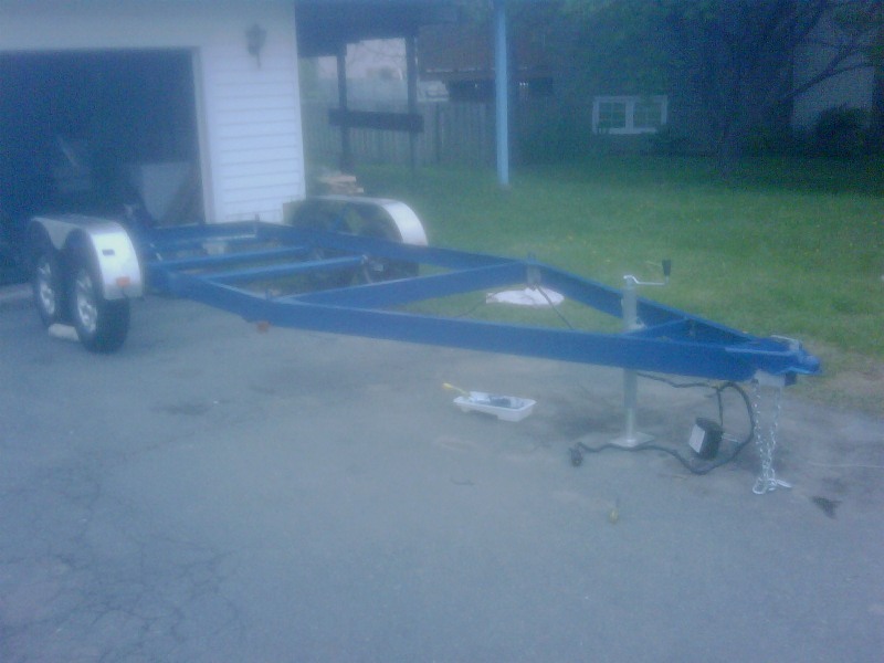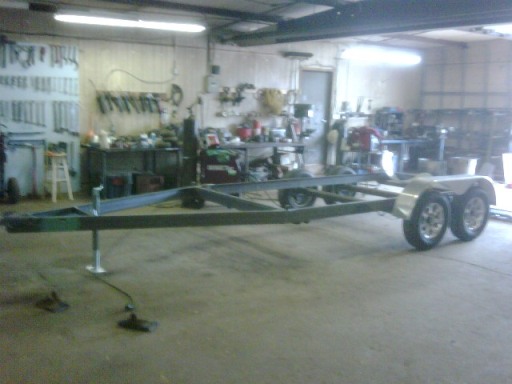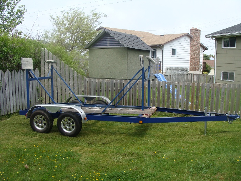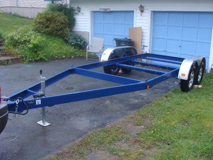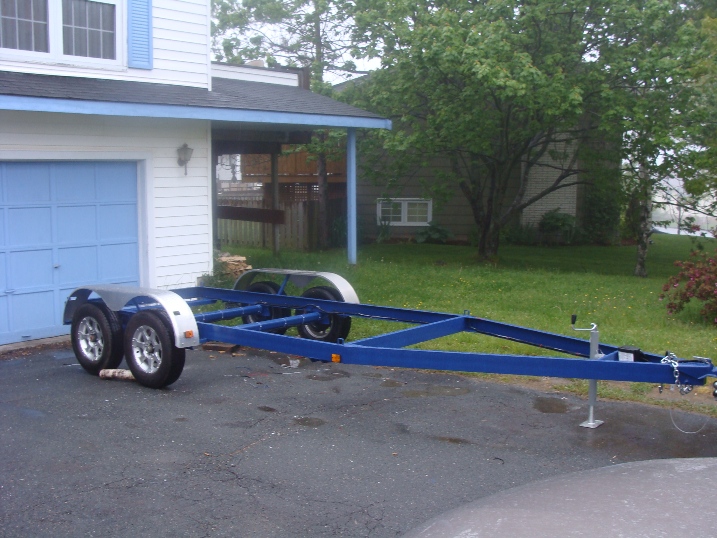 The trailer is now built. Still to do is wiring followed by registration and inspection and painting. The cradle will sit in this frame and will be bolted in place. Costs to date $1200 and 50 hours for trailer and $1328 for the cradle. $2500 for a brand new trailer vs. $4300 to buy a new one. Not that bad.