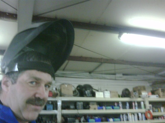 Mike gets to show off his "welding hat" ...