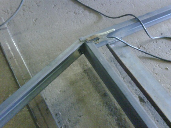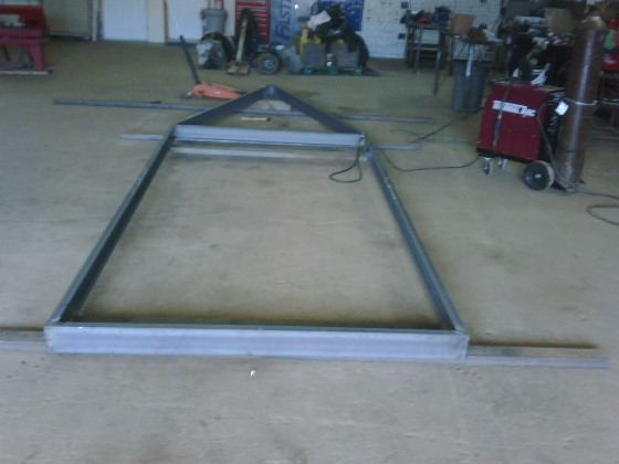 We finally started work on Saturday May 1 2010. I have worked with a lot of materials on various projects around house, boat and car - but never before have I worked with steel. Seeing huge showers of sparks shoot 6 feet in the air when cutting steel is a new experience. Especially when some are shooting at me! Andy on the welder with what I initially mistook for a motor cycle helmet and Mike bending steel using only my arms. Welcome to the big time and as my buddy Bender would say "Bite my Shiny Metal A$$".
