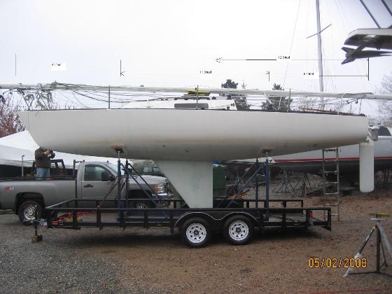Step one was to determine a design. The main consideration was to use the existing cradle and bolt it to a trailer frame. By building in this manner the trailer can be used for future boats in the event this one gets sold. The cradle will sit on a frame we will build that will be as low as possible.