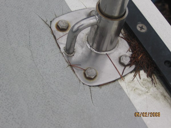 Deck cracked and saturated around four stanchions