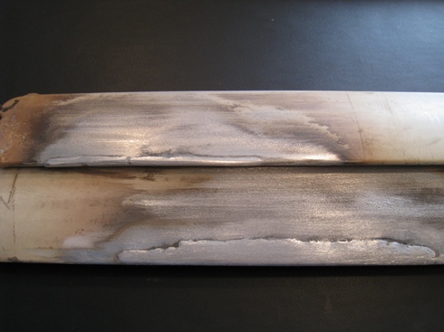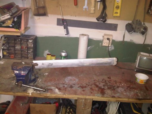 During the 2010 sailing season it was noticed that both Port side spreaders had small cracks on the edge where the original seam had opened. Apparently this was caused by winter storage with port side spreaders lower than stbd and water freezing inside the ends. There were two options presented to remedy this. 1. Purchase new spreaders or 2. Have the spreaders welded. Hall Spars was contacted and could set up tooling to provide spreaders at $195 US each plus shipping or alternatively they could be welded locally. Aluminum welding needs specialized equipment so finding a shop is a bit more limited. However our friend Andy has a "guy" who does this for his business and he did a great job. Next step is to sand off all paint from all four spreaders and refinish.