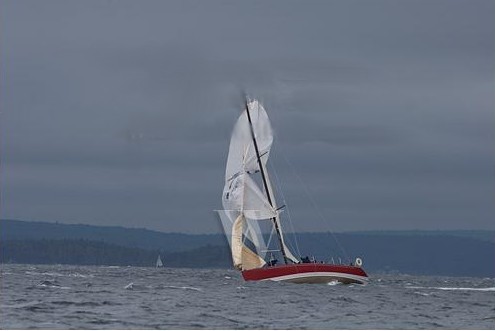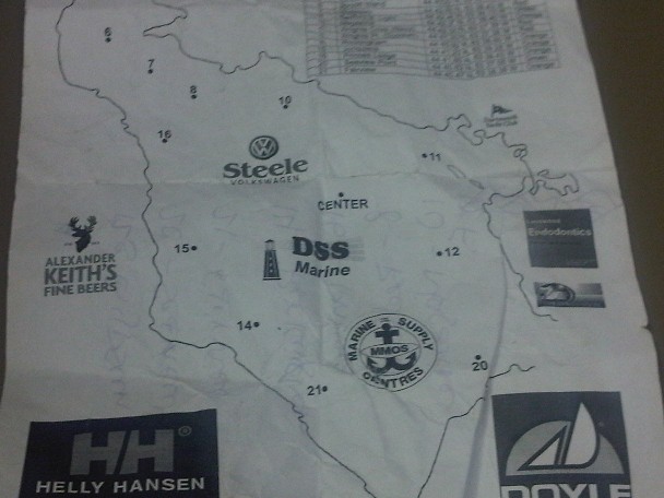 Day 3 - 20-25 diminishing to 15 in the afternoon. Still form the North. Reefed main and #3 for race one and we had a great start. However we were called back as we had been OCS approx 2 mins prior to start. By the time we realized and restarted we were over five minutes behind our fleet. Race 2 was better but again was gusty. We decided to be lazy and did not fly spinnaker in this race and finished 4 seconds behind Intuition who did. Race 3 was light enough that we finally flew our #1. We had some good moments but a disastrous leeward mark rounding dropped us from 2nd to 5th in our class. We did better than Siren III though - after day one tearing the head out of their #3 and breaking the boom vang they followed on day three with a blown spinnaker, short crew and enough frustration to not finish a single race. On Nut Case we somehow broke nothing although we also performed poorly.