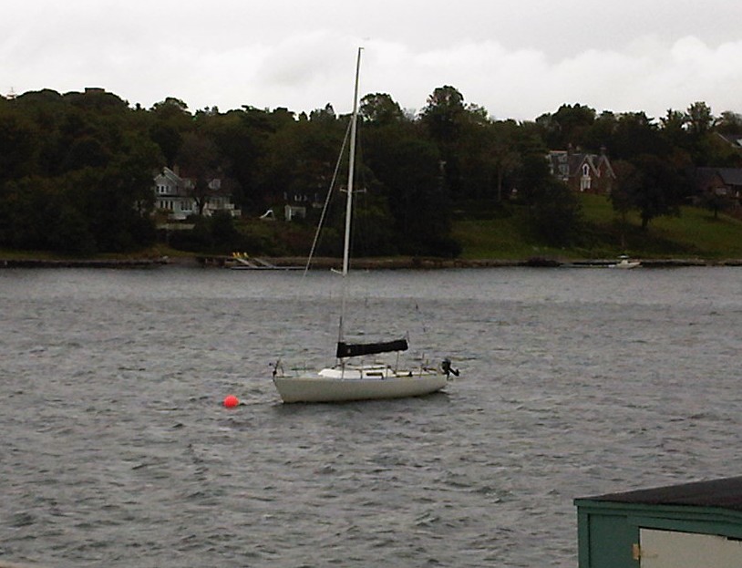 On the Monday after the big boat race we launched Nut Case in Halifax on the Monday, tuned and rigged on Tuesday and raced in a Wed evening race at Dartmouth Yacht Club on Wednesday. The bottom was freshly scrubbed and with just two people we sailed to a third place finish in white sail in winds 6 - 20+ knots - speed ranged from 1.3 knots to 8.6 knots. Thursday the two hour motor to the NW Arm from DYC in very thick fog thru Halifax Harbour. The Chartplotter was very worthwhile!