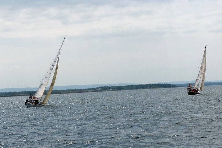 An island named after a prince. Fitting as Prince William and Princess Kate were to visit Charlottetown two days after our race. This 30 mile race featured boats from Charlotteown, PEI, Pictou, NS and Barrachois, NS. The night before was our annual social at the club with the racers staying aboard the boats - a favourite way to start a long weekend. The race started with an upwind leg out of Amet Sound. Our strategy was to let the other boats sort themselves out so that we could get clean air - we did this and then set out on a port tack above the entire fleet in beautifully clean air. Once again Nut Case showcased it's pointing ability. Where the entire fleet had to tack several times to clear the bay only Nut Case and the Olson 30 Ghost were able to do this on a single tack. Nut Case actually pointed higher while traveling just as fast as Ghost - an impressive feat for us!