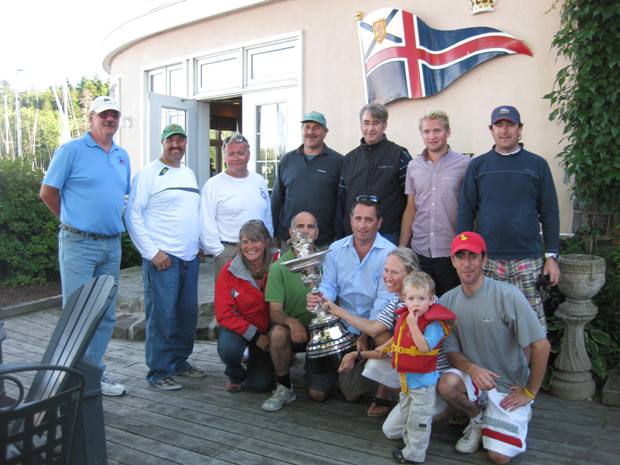 The Prince of Wales regatta in Halifax goes back to at least 1860. The prince was here at that time at the event. We took another break from Nut Case to sail on Koobalibra in this very prestigious event. In this race were Helms Deep - Soto 40 (PHRF -18), More Trouble - Farr 11S (-12), Climax - 1D35 (33), Blast - J/111 (39), Illicit - Beneteau First 44.7 (39), Dogsled - Kuafman 47 (39), One More Time - Farr 30 (51), Wikked - Farr 30 (51), Koobalibra and Triumph - both C&C 115 (63), Third Wave - C&C 37R (63), Harrier and Craccker Jack - J/35 (72), Duck - Beneteau First 367 (75), Mischief - C&C 40 (87). Winds were 15 - 23 knots in a 28 mile race. On board we had Dave, Gordie, Wendy, Andrew, Trevor, Peter, Kevin, James, Jen, Heather, Mitch, Tony, Malcolm, Mike. On Saturday in the big race we finished First overall! On Sunday we had four less people and did not do so well - were referred to as the Bookend Boat with a first and a last in the series.