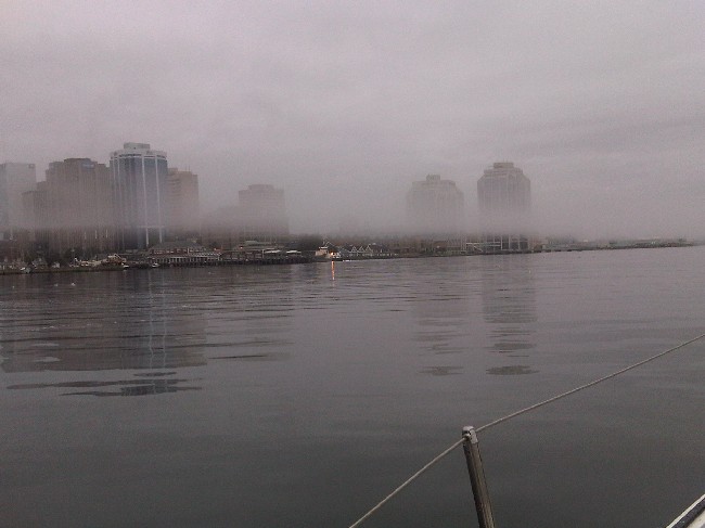Halifax shrouded in Fog - delivery to DYC for Bean crock race