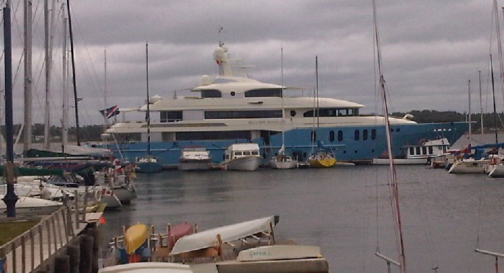 Day 2 - Gales 35 knots. Racing cancelled and Social on. Unfortunately was cold - 15 degrees. Highlight of the day was when the 174 foot Silver Shalis pulled into the dock. The tender that came out of the stern of this boat had three 350hp outboard motors!