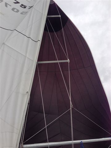 After Mars Rock the course was dead downwind and we launched our black Doyle spinnaker in very rolly messy seas. This spinnaker had been cut down to 180% since Charlotettown Race Week and this was our first time flying it since the recut. The spinnaker looked OK and we were pleased not only with the job done by the sail maker but more importantly by our speed getting back to 6.8 knots.