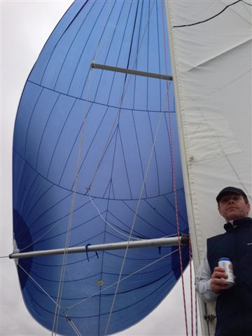 The race was a fun course out of NW Arm, then around George's Island in Halifax harbour and a couple W/L legs before a finish in front of club house. After our second mark was downwind to Georges Island in now 15 knots of breeze. We managed to get the spin hoisted with out too many issues but then had an hourglass and a boat to windward which prevented a proper fill of the chute. OK - Kevin to the foredeck and managed to wrestle the mess and get the spin flying - then a nice run to the island - the tiller was vibrating as we hit 8 knots a few times.