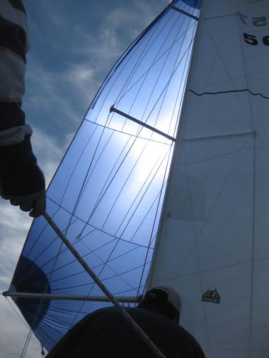Around the mark and downwind with wind off the beam on a Spinnaker reach. The boat hit 8.86 knots and was a great ride! Then back upwind to the last mark and we sailed into a huge hole as we watched the fleet disappear. OOPs. A final spin reach and finish in the NW Arm under little wind to finish the day.