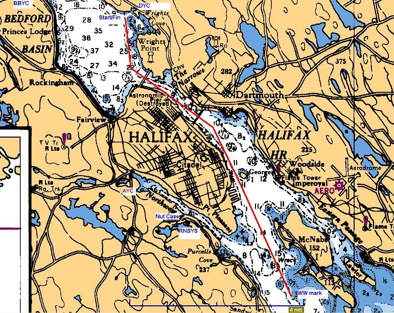 The Beancrock race at DYC is typically run from the start off DYC in Wrights Cove in the Bedford Basin then out Halifax Harbour beneath two bridges, past Georges Island and into the Harbour Approaches off McNabs Island before returning to DYC for the finish. typically a 15 mile race with a 4 or 5 hour time limit. Following the race there is a steak BBQ, live band and then a big end of season party at DYC. It really is a great time and we have always enjoyed it - even when raced in fog with no wind or in rain.