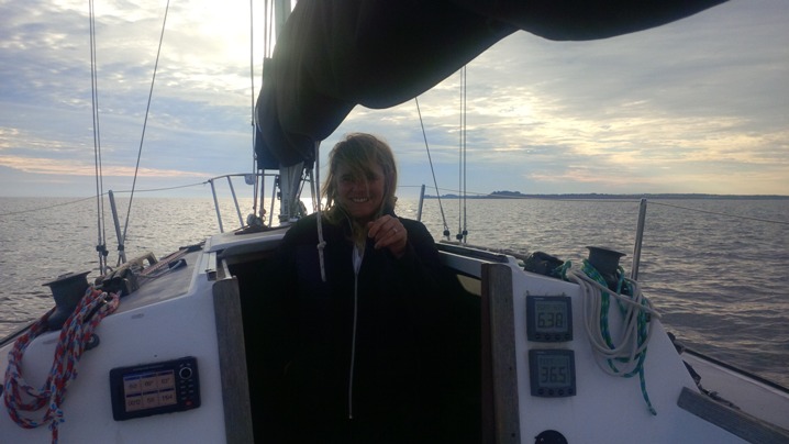Leaving Barrachois Harbour at 6:14AM. Heather looks far too happy for this time of day