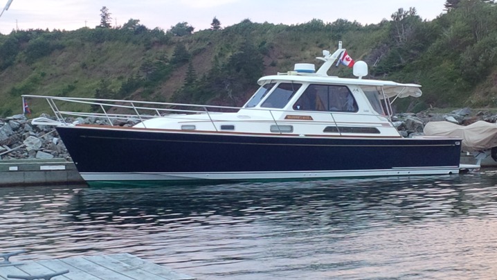 The week following Chester was spent on phone with Insurance Company and with vendors for sail repair, boat repair and outboard sales. North had our main repaired and back to us by the beginning of the week for a very nominal cost. Meanwhile Gerry at St Peters took care of our boat for two weeks and also took care of repairing our motor mount so that everything would be ready when we arrived on Saturday August 24. We had opted to go with Sheltered Cove Marine for our new motor which was again a 6 hp 20 in long shaft Tohatsu with internal/external tanks, alternator and hi thrust prop. This time rather than upgrading from a 4hp we started with the 6hp and did not have to replace the carburetor. Throughout all of this the insurance company Fairway Insurance brokers were kept in the loop and everything was covered including our two week dock fees in St Peters. I cannot say enough about how good it is to deal with people such as Gerry in St Peters Marina or the people at North Sails Atlantic who had our sail back to us by the time we returned from Chester or Dave and Wayne at Sheltered Cove Marine. My only fear from all of this is that we may have strained our relationship with the excellent people at Fairway Insurance after replacing two motors in two years - but hey, everyone should buy the same motor three years in a row!